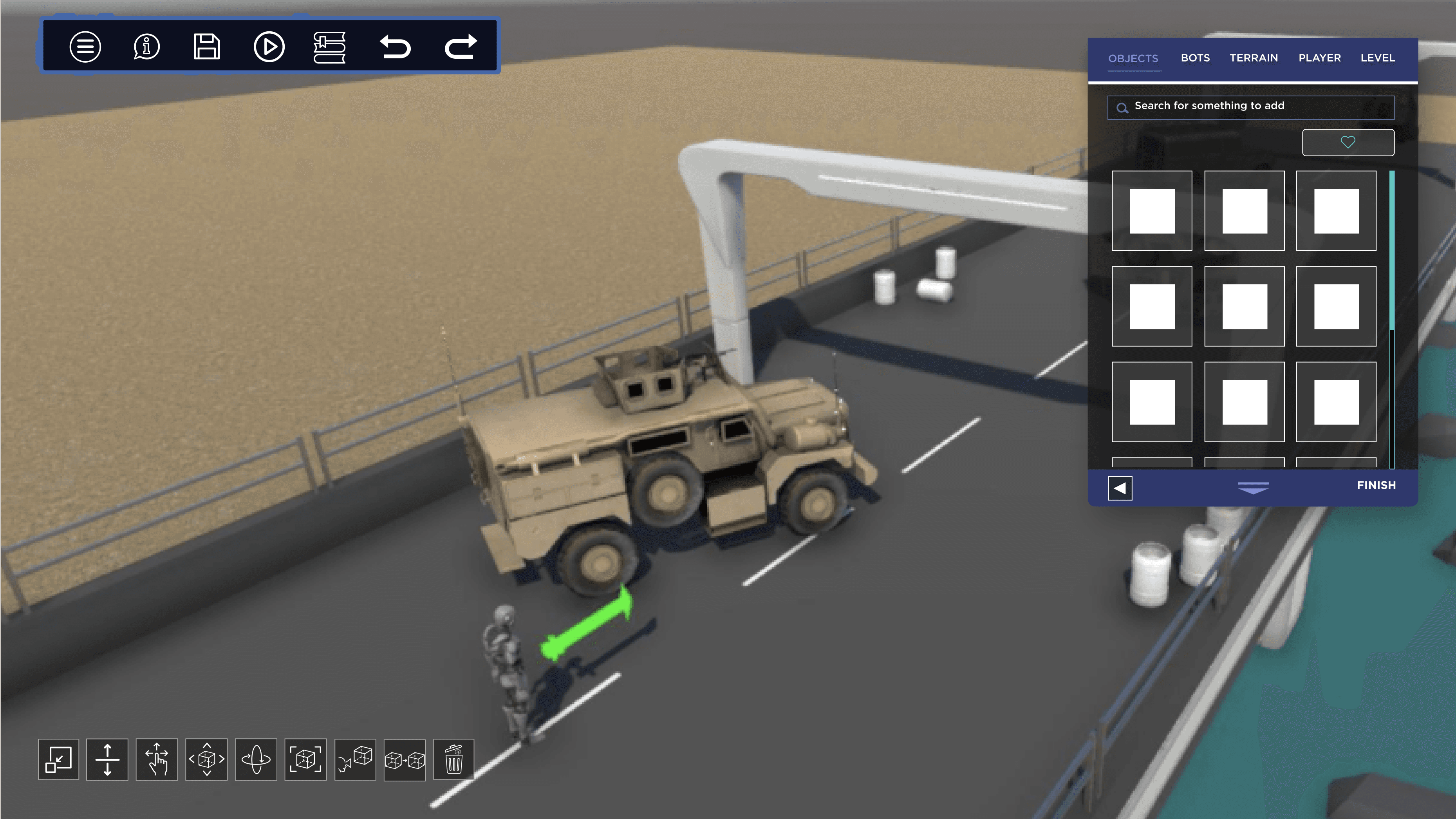 Complete and save any edits done to the objects, bots, terrain, player, or level.