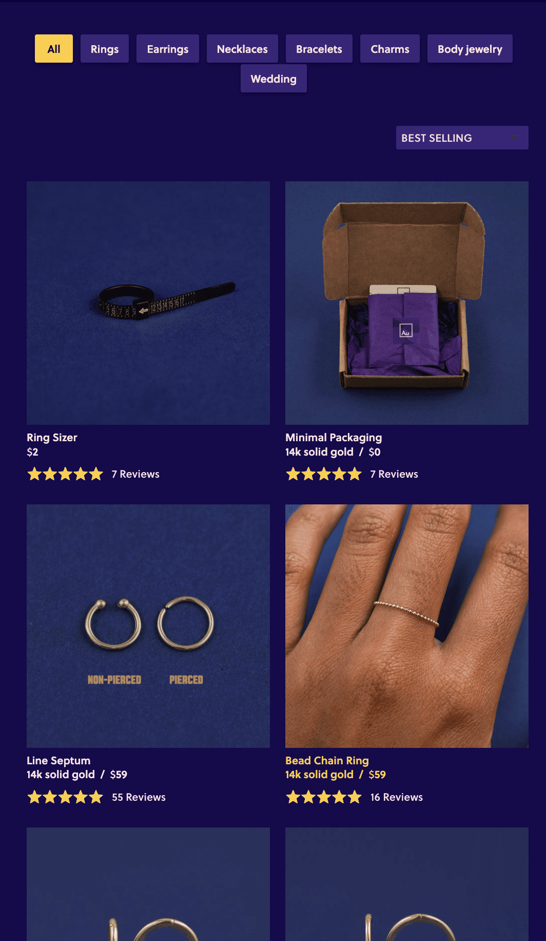 I suggested a shopping experience inspired by other indie jewelry brands such as Mejuri or Missoma. They showcased a more intuitive shopping experience